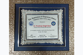 Er. Pradeep Singh Gour Director Principal Lawrence And Mayo Public School Kota for “Exemplary Academic Leader of the Year” Award 2020 presented by Hon’ble Governerof Rajasthan Shri Kalraj Mishra ....